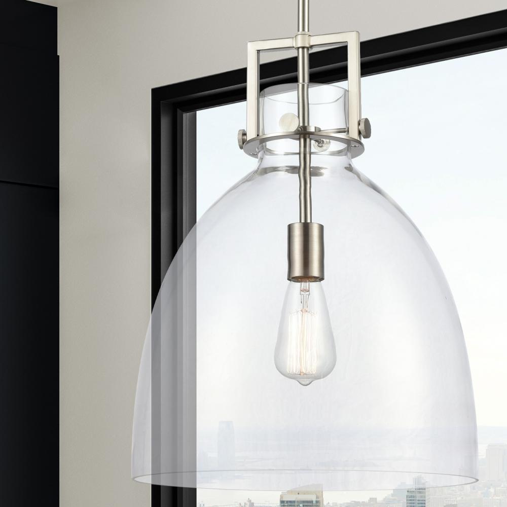 Newton Bell - 1 Light - 14 inch - Satin Nickel - Clear Shade - Pendant
