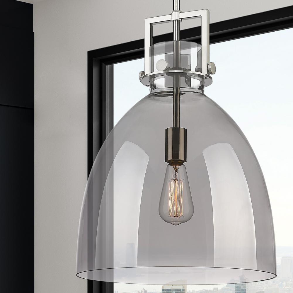 Newton Bell - 1 Light - 14 inch - Satin Nickel - Light Smoke Shade - Pendant