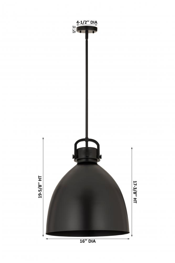 Newton Bell - 1 Light - 16 inch - Matte Black - Matte Black Shade - Pendant