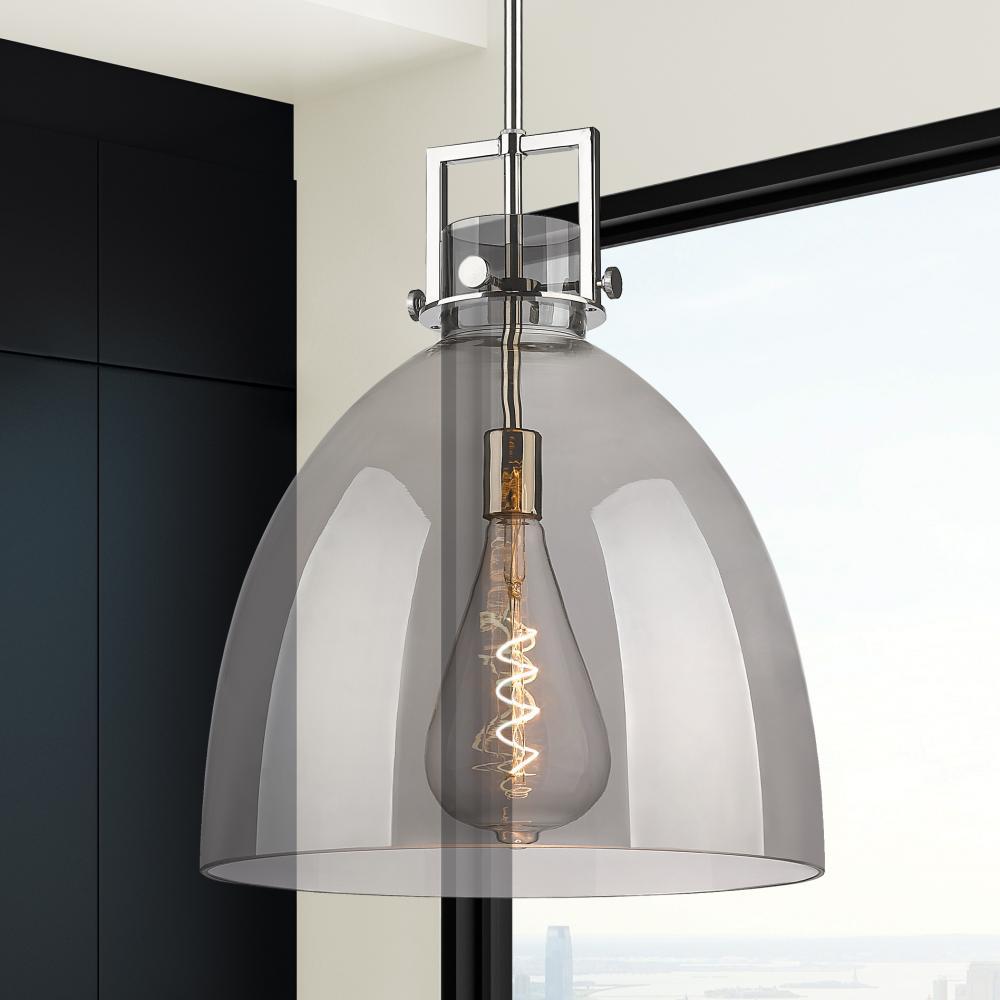 The Newton Bell is a modern industrial collection that incorporates exceptional architectural details and classic bell shaped shade. The delicately curved glass or metal shade complements the clean lines of this restoration inspired line of fixtures. The N