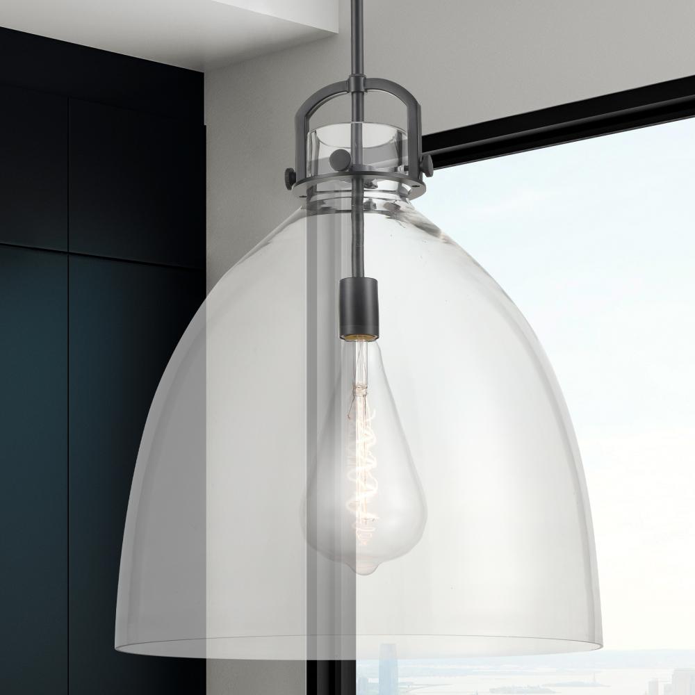The Newton Bell is a modern industrial collection that incorporates exceptional architectural details and classic bell shaped shade. The delicately curved glass or metal shade complements the clean lines of this restoration inspired line of fixtures. The N