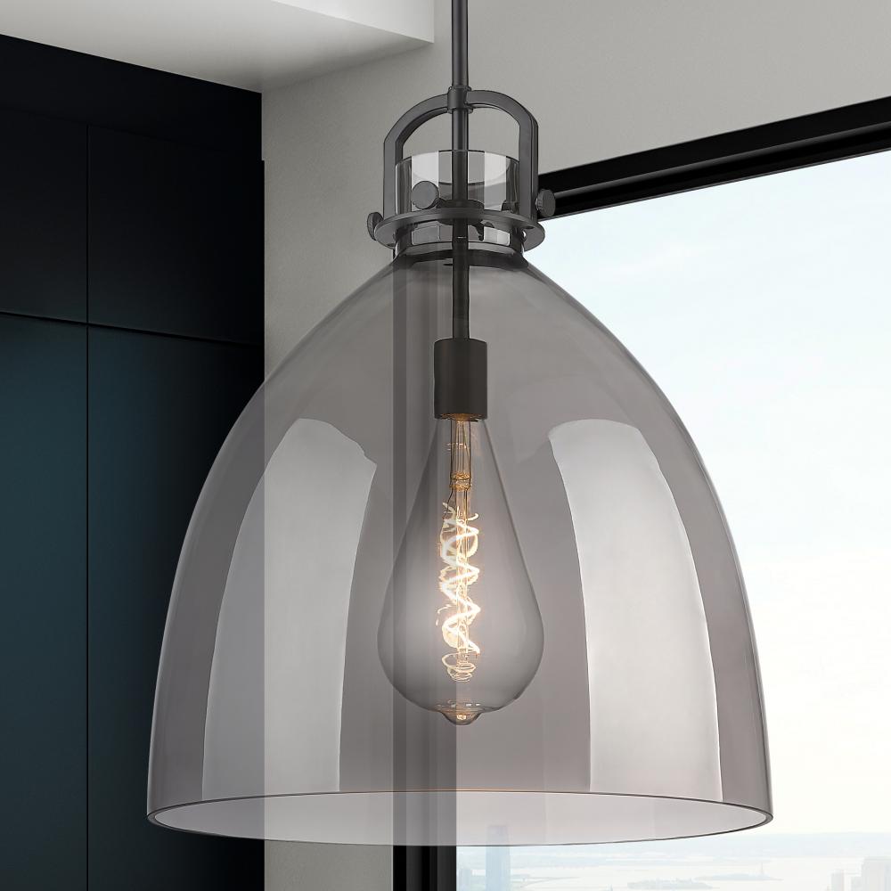 Newton Bell - 1 Light - 18 inch - Matte Black - Light Smoke Shade - Pendant