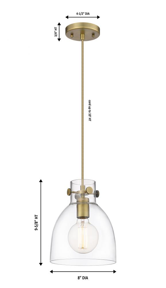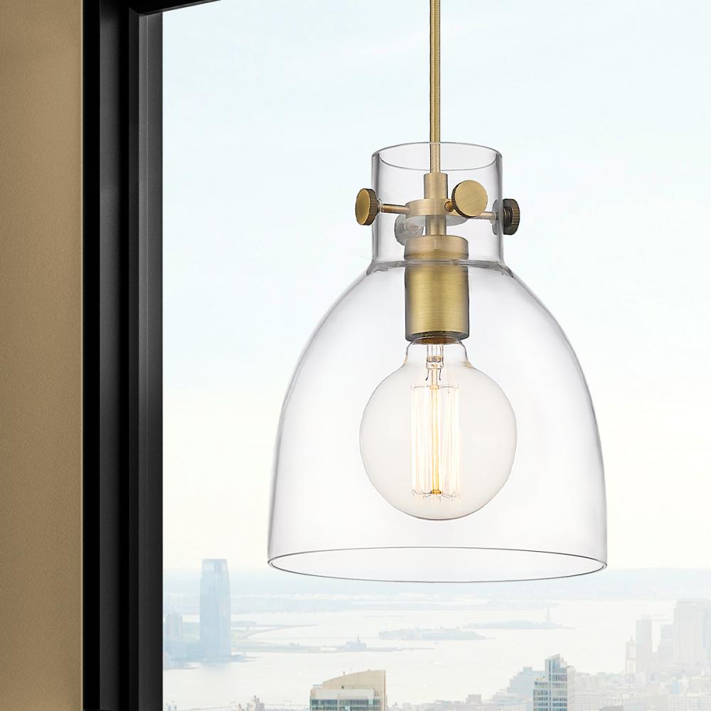 Newton Bell - 1 Light - 8 inch - Brushed Brass - Clear Shade - Cord hung - Pendant