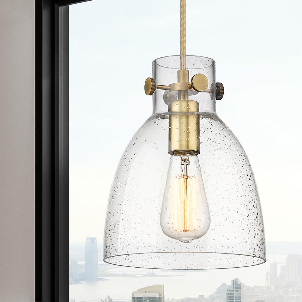 Newton Bell - 1 Light - 8 inch - Brushed Brass - Seedy Shade - Cord hung - Pendant