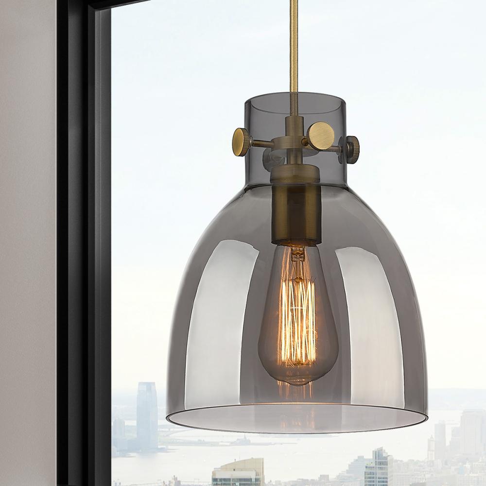 Newton Bell - 1 Light - 8 inch - Brushed Brass - Light Smoke Shade - Cord hung - Pendant