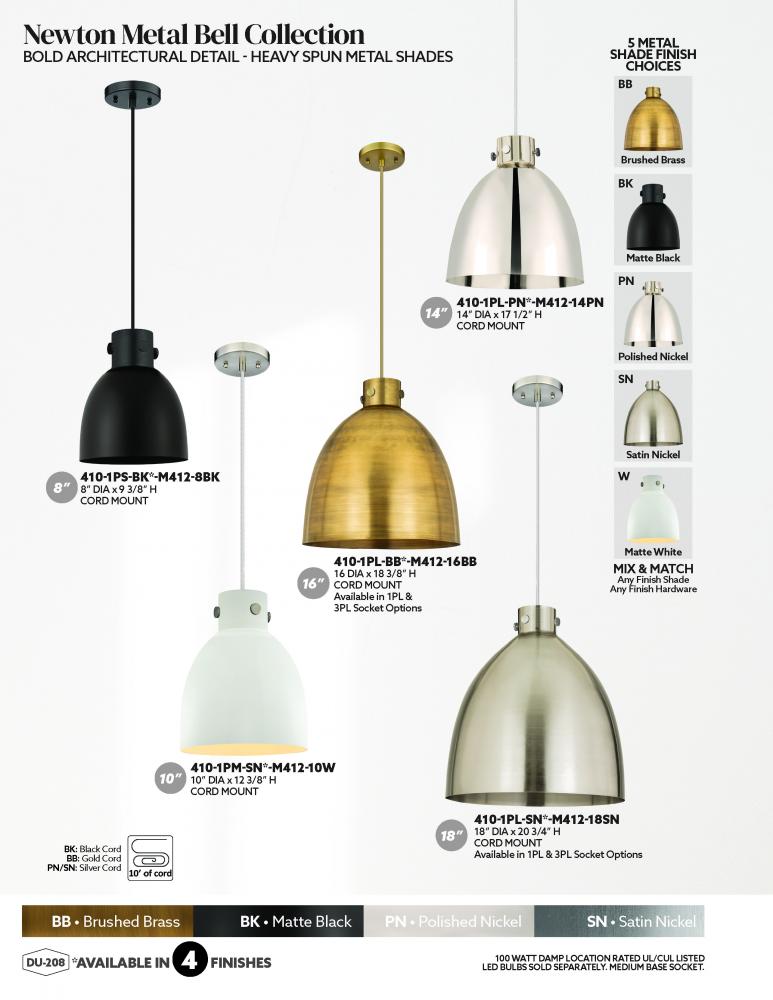 The Newton Bell is a modern industrial collection that incorporates exceptional architectural details with a beautiful globe shaped shade. The iconic Bell shaped shade is available in either glass or heavy spun metal, making this collection perfect for cr