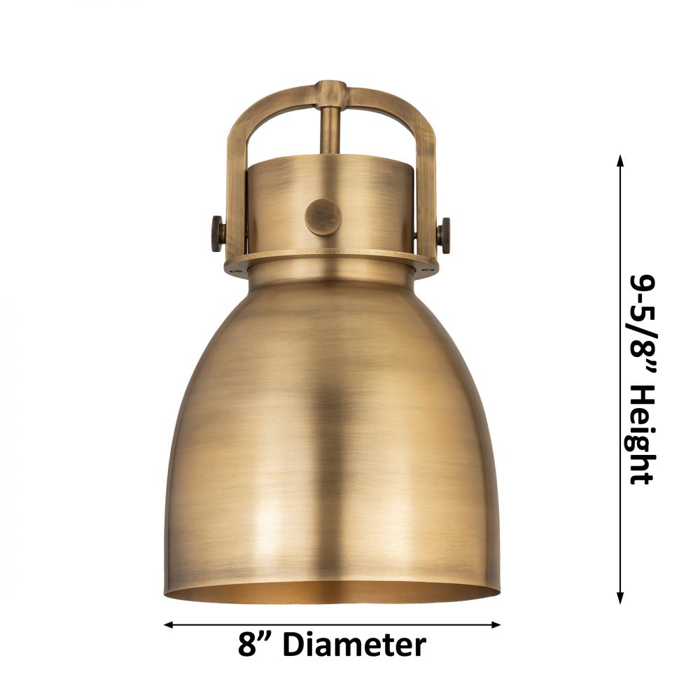 Newton Bell - 1 Light - 8 inch - Brushed Brass - Brushed Brass Shade - Cord hung - Pendant