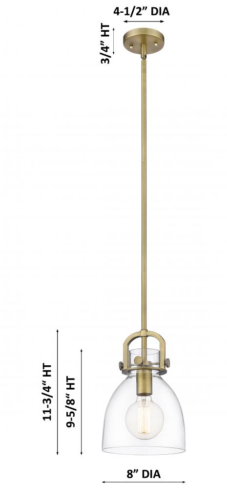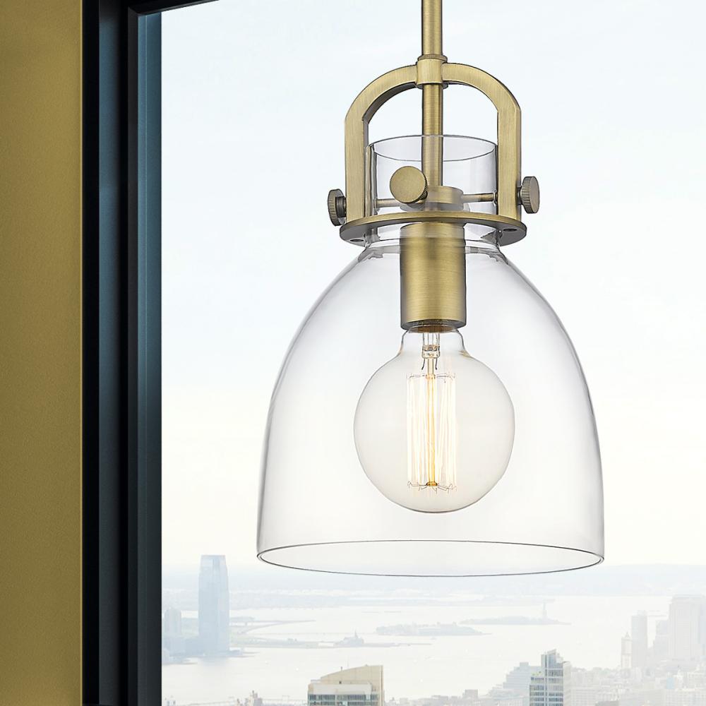Newton Bell - 1 Light - 8 inch - Brushed Brass - Clear Shade - Mini Pendant