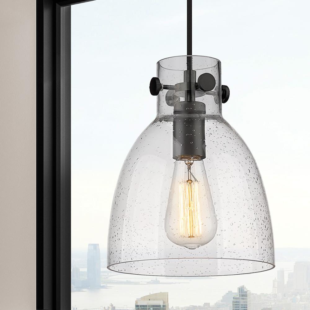 Newton Bell - 1 Light - 8 inch - Matte Black - Seedy Shade - Cord hung - Pendant