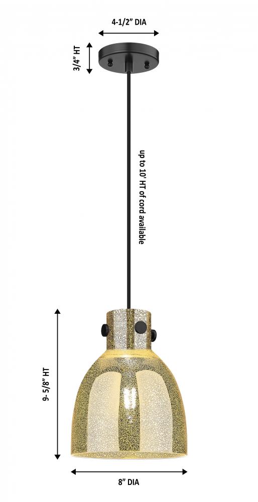 Newton Bell - 1 Light - 8 inch - Matte Black - Mercury Shade - Cord hung - Pendant