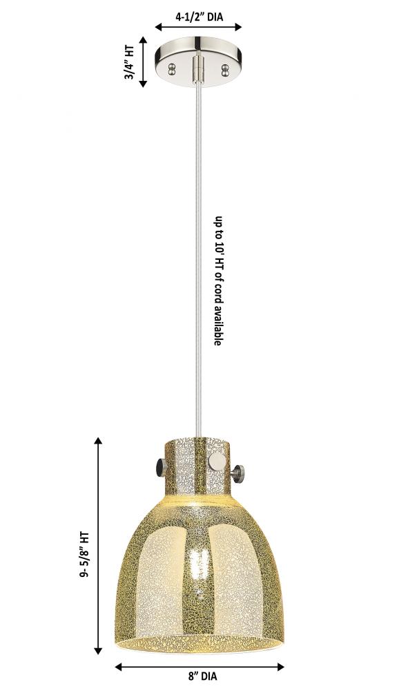 Newton Bell - 1 Light - 8 inch - Polished Nickel - Mercury Shade - Cord hung - Pendant