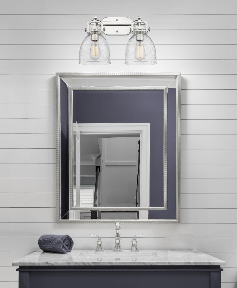 Newton Bell - 2 Light - 17 inch - Polished Nickel - Seedy Shade - Bath Vanity Light