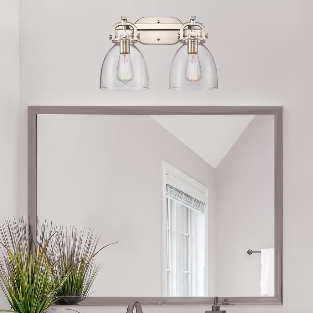 Newton Bell - 2 Light - 17 inch - Satin Nickel - Clear Shade - Bath Vanity Light