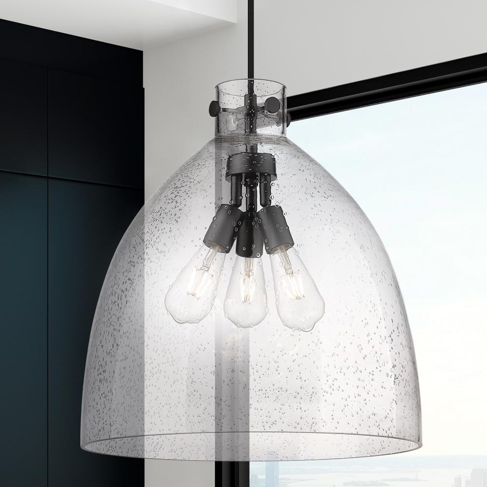 Newton Bell - 3 Light - 18 inch - Matte Black - Seedy Shade - Cord hung - Pendant
