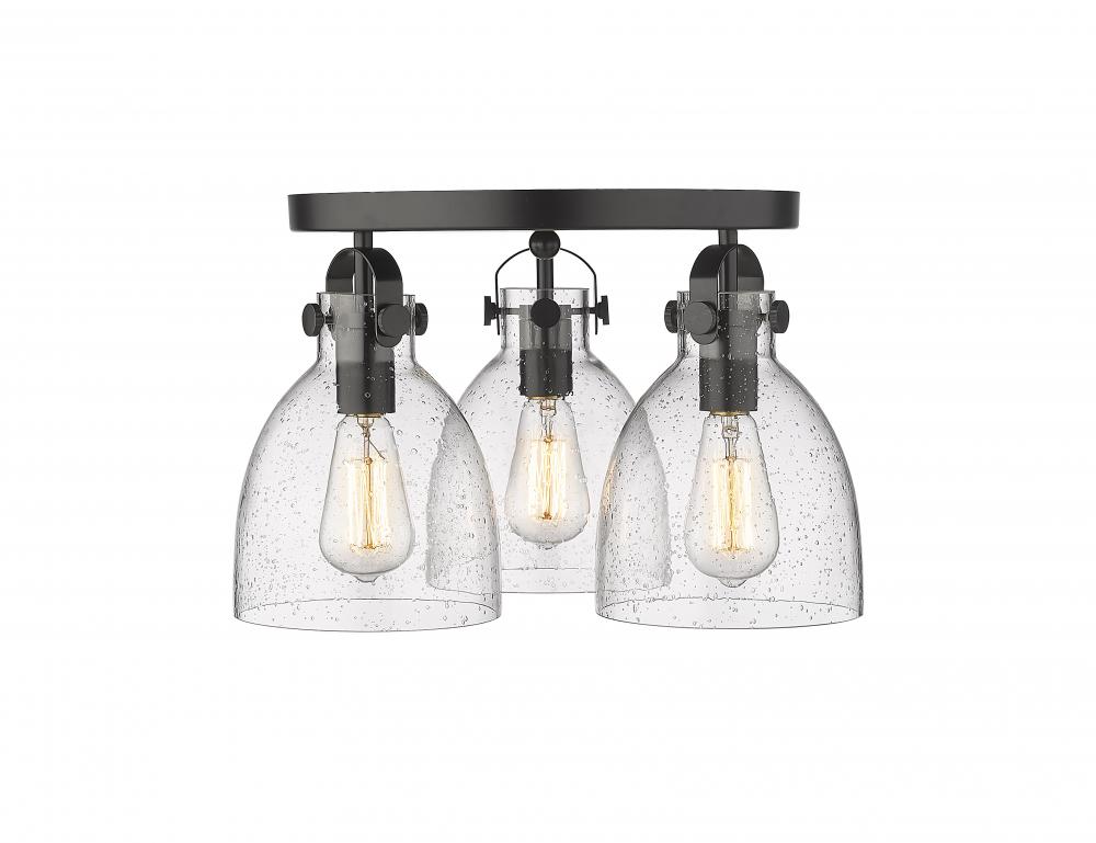 Newton Bell - 3 Light - 18 inch - Matte Black - Seedy Shade - Semi-Flush Mount