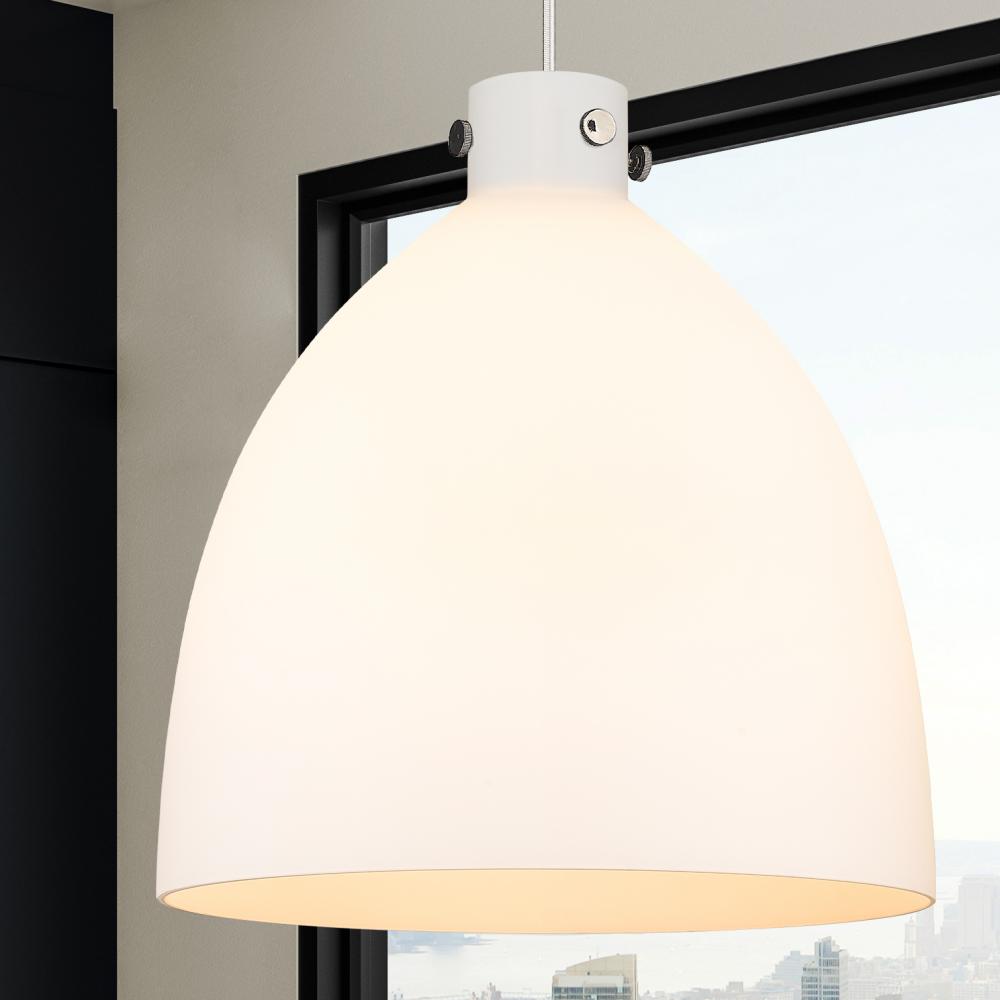 Newton Bell - 3 Light - 18 inch - Polished Nickel - White Shade - Cord hung - Pendant