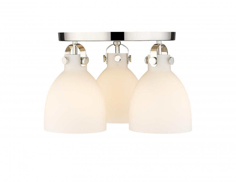 Newton Bell - 3 Light - 18 inch - Polished Nickel - White Shade - Semi-Flush Mount