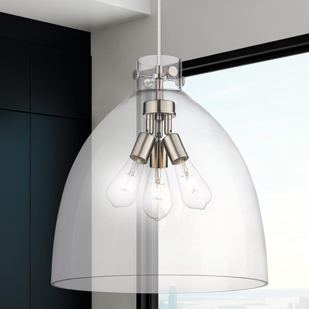 Newton Bell - 3 Light - 18 inch - Satin Nickel - Clear Shade - Cord hung - Pendant