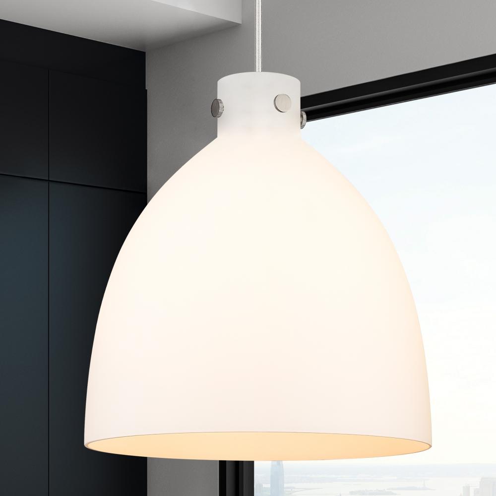 Newton Bell - 3 Light - 18 inch - Satin Nickel - White Shade - Cord hung - Pendant