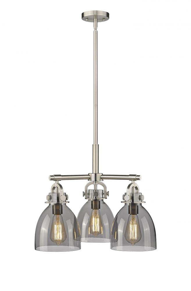 Newton Bell - 3 Light - 21 inch - Satin Nickel - Light Smoke Shade - Pendant
