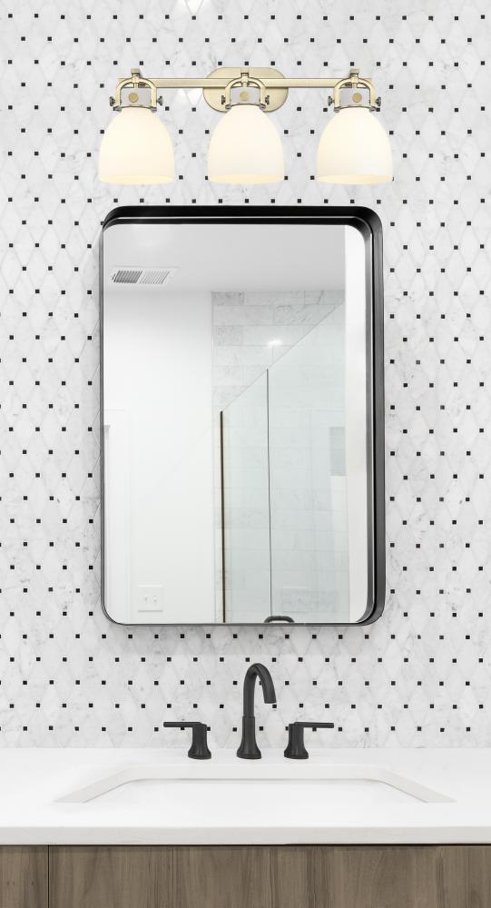 Newton Bell - 3 Light - 27 inch - Brushed Brass - White Shade - Bath Vanity Light
