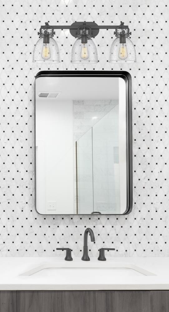 Newton Bell - 3 Light - 27 inch - Matte Black - Seedy Shade - Bath Vanity Light