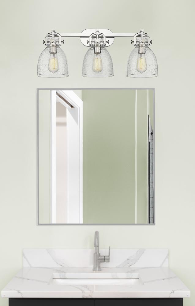 Newton Bell - 3 Light - 27 inch - Polished Nickel - Seedy Shade - Bath Vanity Light