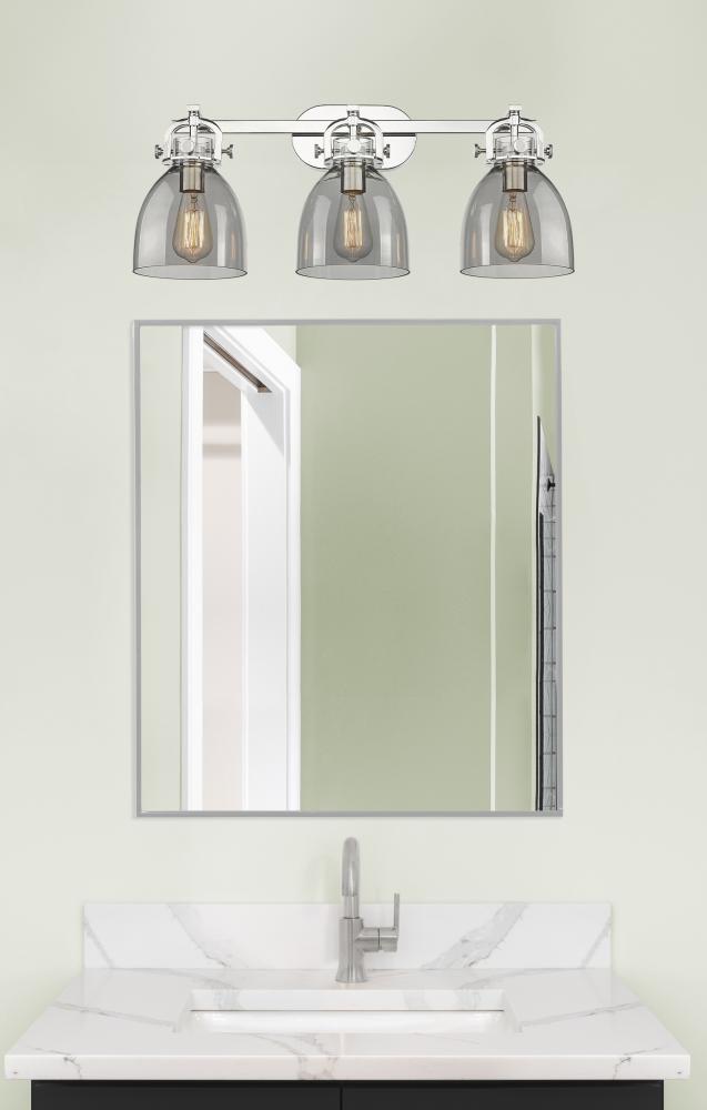 Newton Bell - 3 Light - 27 inch - Polished Nickel - Light Smoke Shade - Bath Vanity Light
