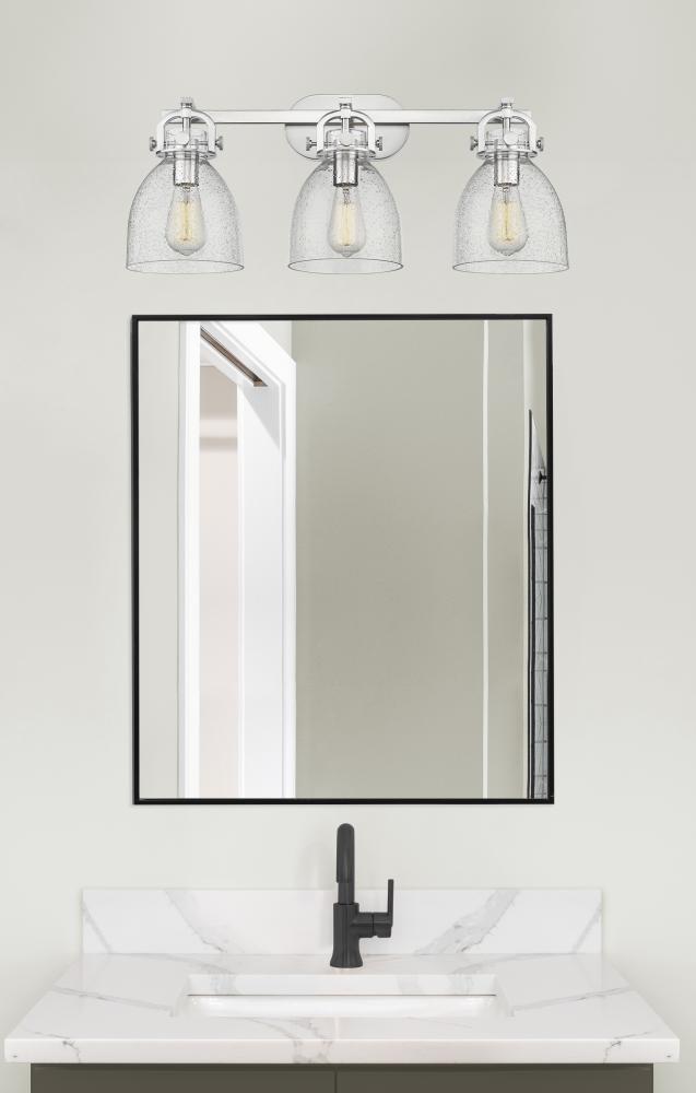 Newton Bell - 3 Light - 27 inch - Satin Nickel - Seedy Shade - Bath Vanity Light