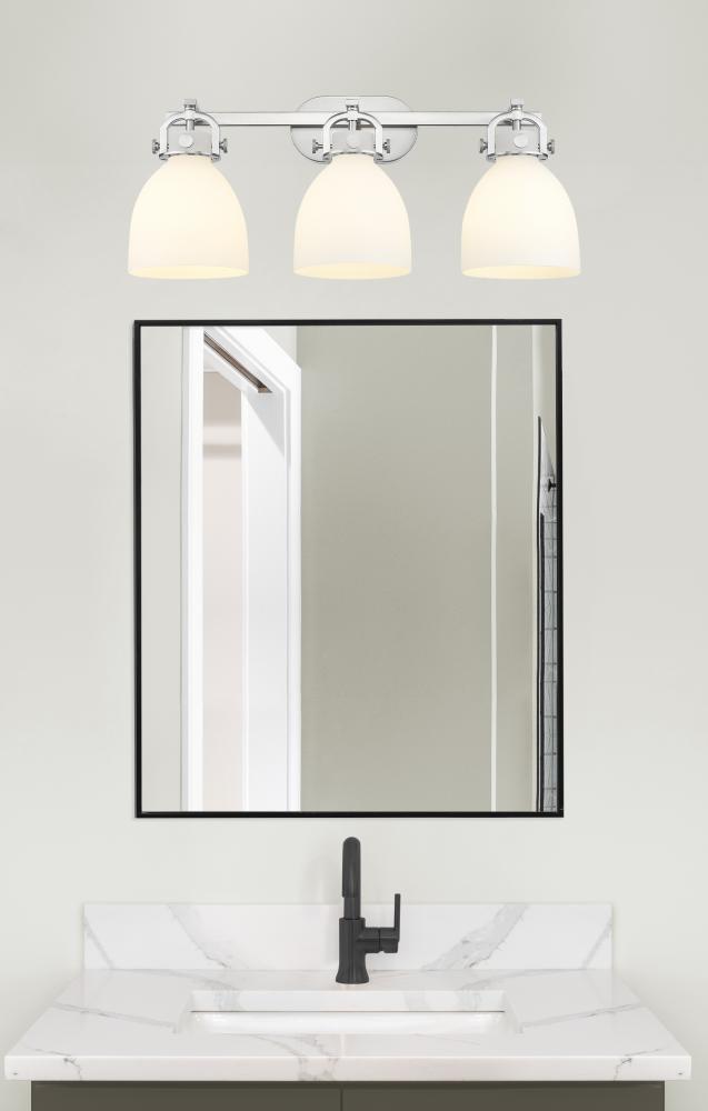 Newton Bell - 3 Light - 27 inch - Satin Nickel - White Shade - Bath Vanity Light