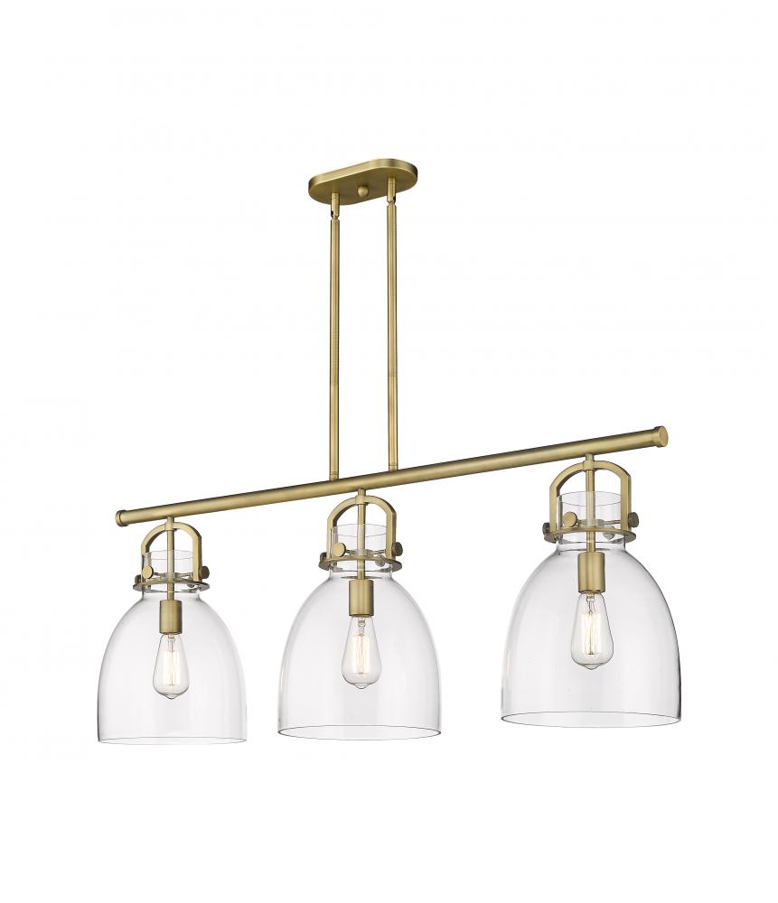 Newton Bell - 3 Light - 42 inch - Brushed Brass - Clear Shade - Island Light