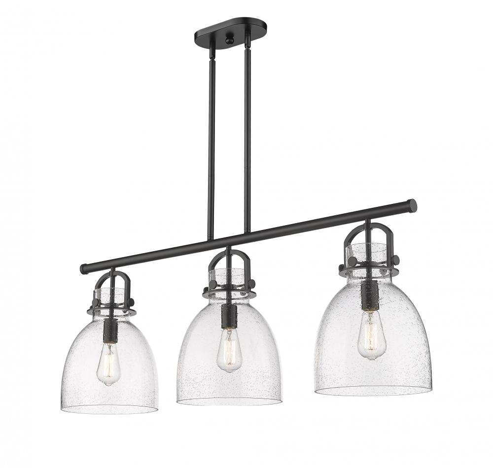 Newton Bell - 3 Light - 42 inch - Matte Black - Seedy Shade - Island Light