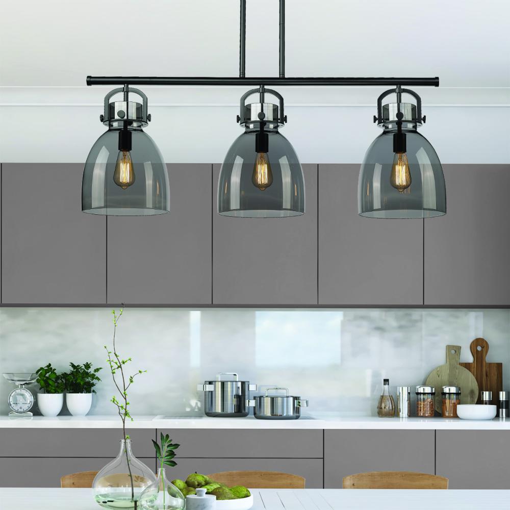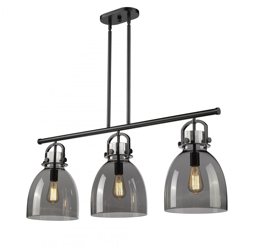 Newton Bell - 3 Light - 42 inch - Matte Black - Light Smoke Shade - Island Light
