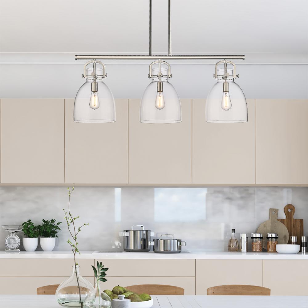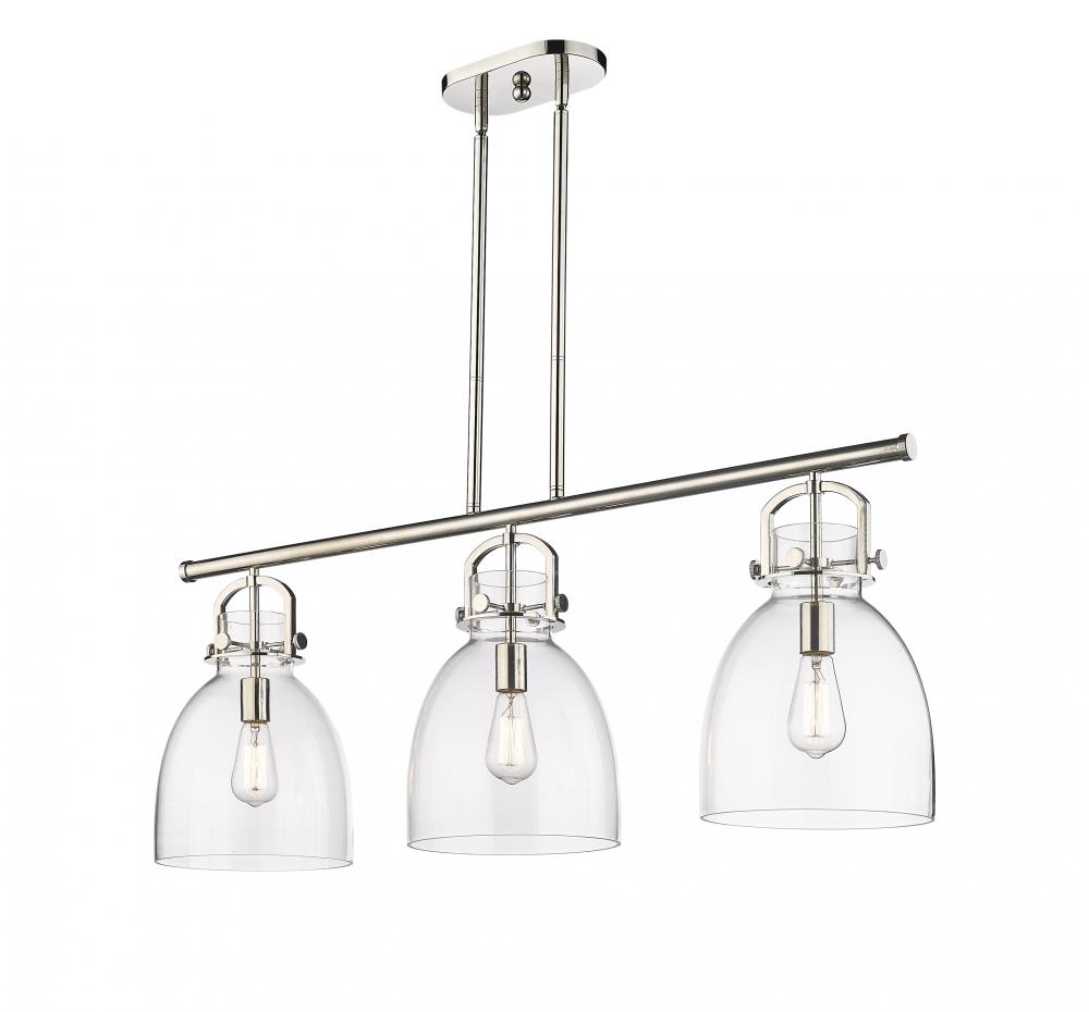 Newton Bell - 3 Light - 42 inch - Polished Nickel - Clear Shade - Island Light