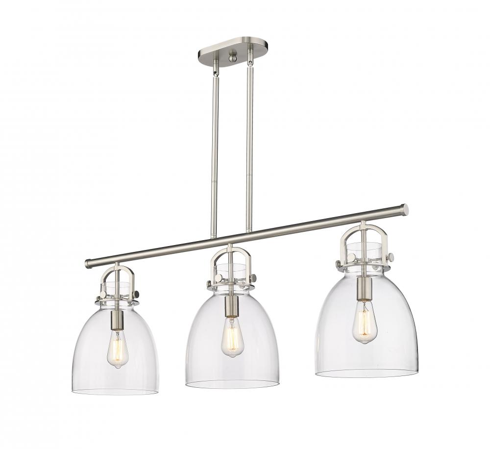 Newton Bell - 3 Light - 42 inch - Satin Nickel - Clear Shade - Island Light