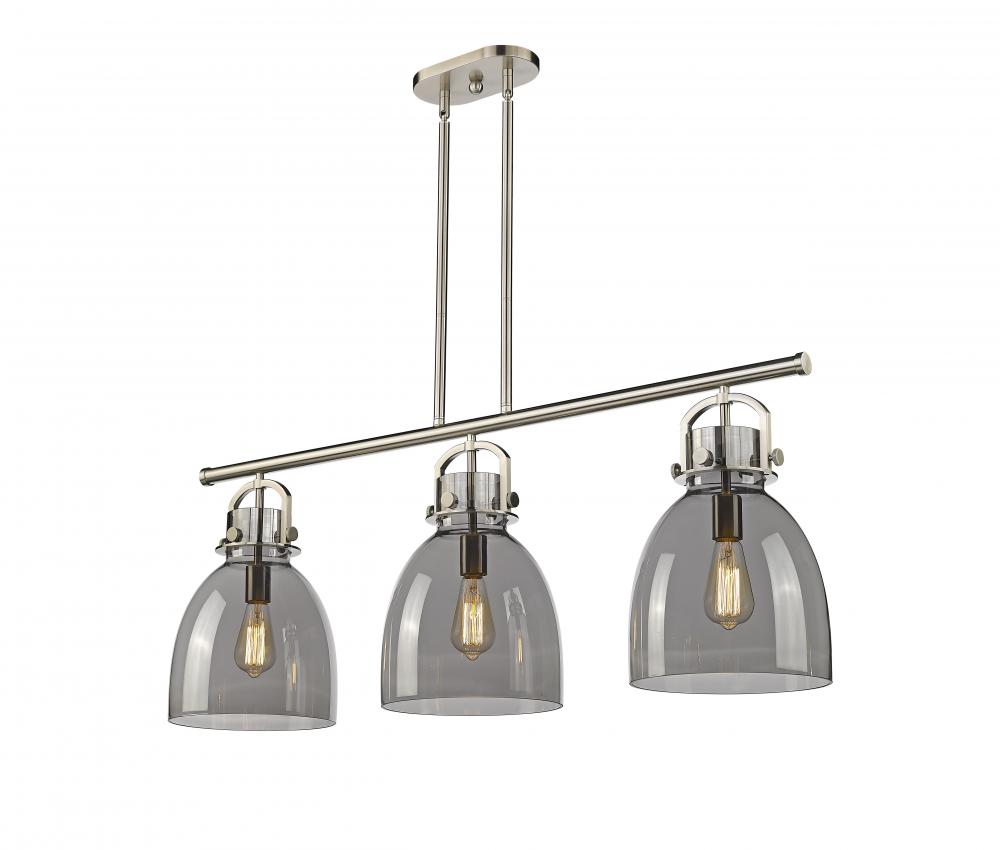 Newton Bell - 3 Light - 42 inch - Satin Nickel - Light Smoke Shade - Island Light