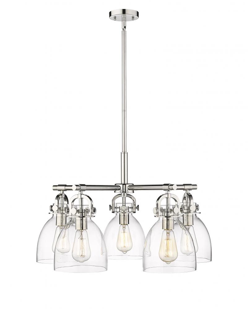 Newton Bell - 5 Light - 26 inch - Polished Nickel - Clear Shade - Chandelier