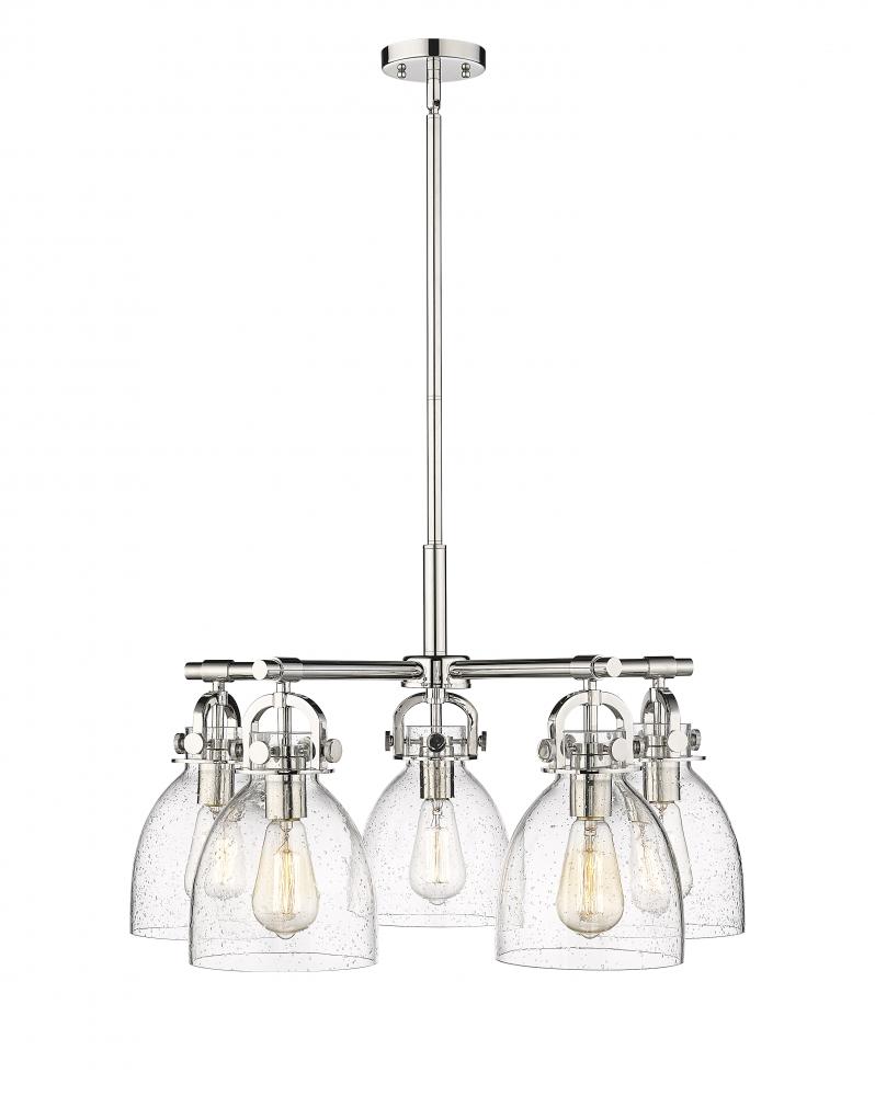 Newton Bell - 5 Light - 26 inch - Polished Nickel - Seedy Shade - Chandelier