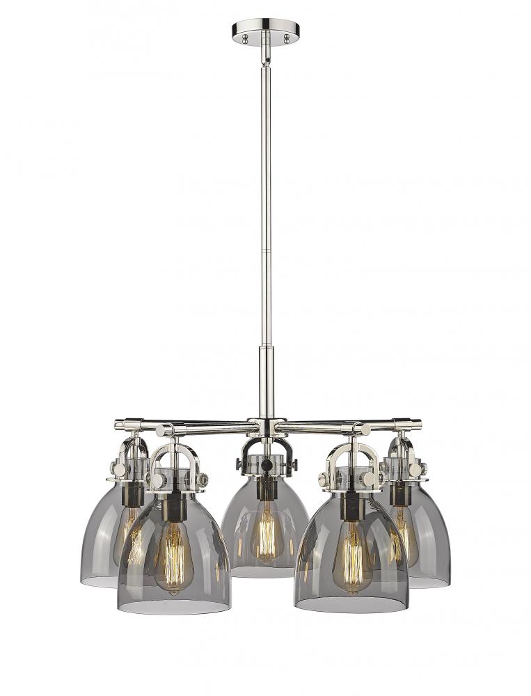 Newton Bell - 5 Light - 26 inch - Polished Nickel - Light Smoke Shade - Chandelier