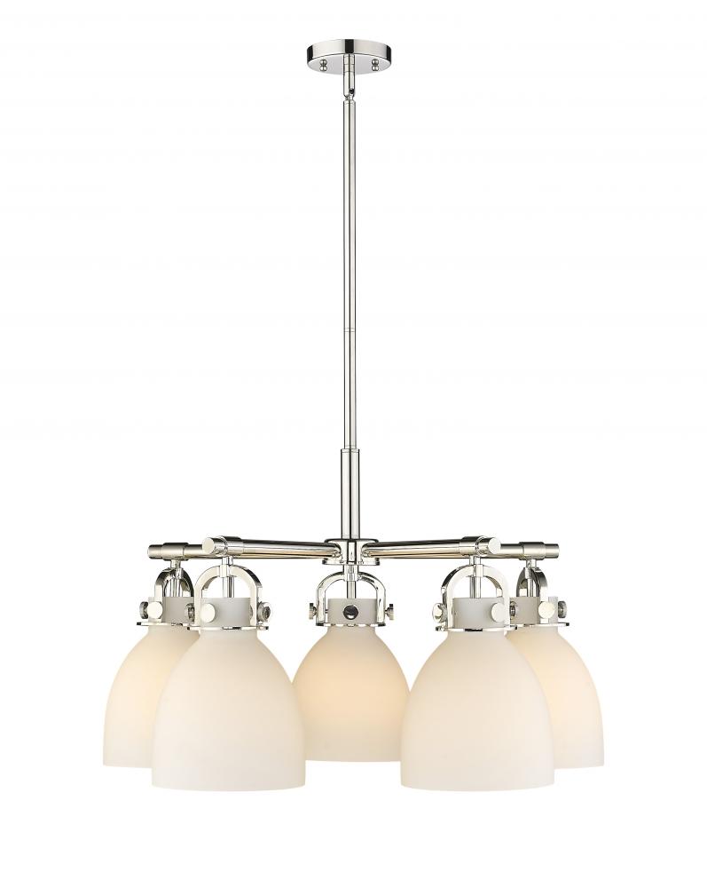 Newton Bell - 5 Light - 26 inch - Polished Nickel - White Shade - Chandelier
