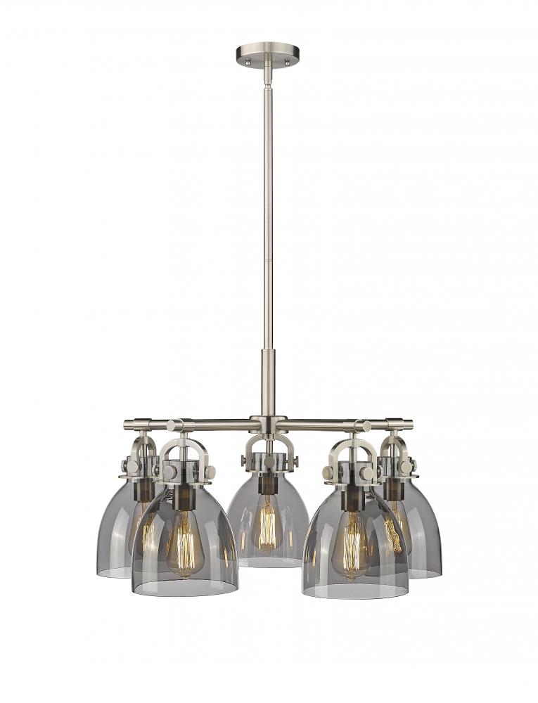 Newton Bell - 5 Light - 26 inch - Satin Nickel - Light Smoke Shade - Chandelier
