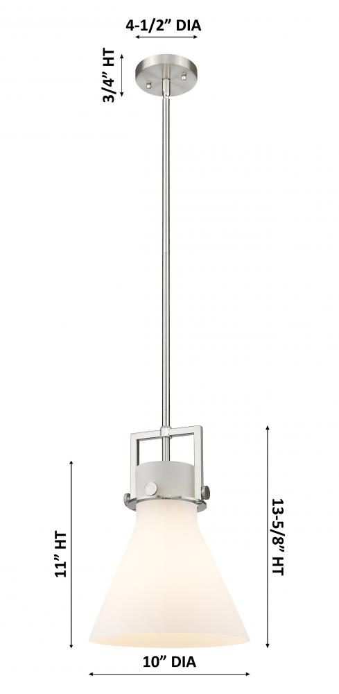 Newton Cone - 1 Light - 10 inch - Brushed Satin Nickel - Stem Hung - Mini Pendant