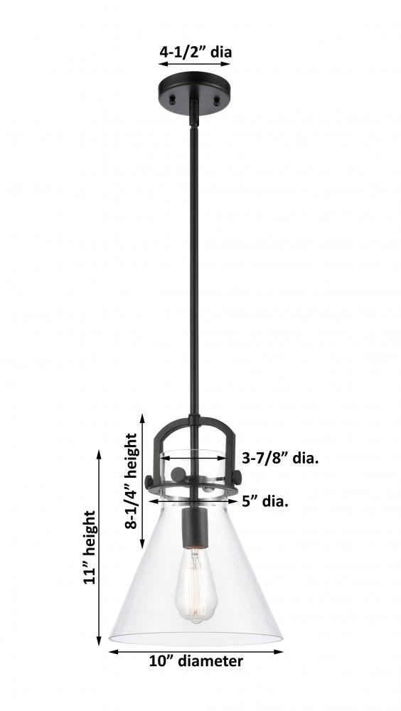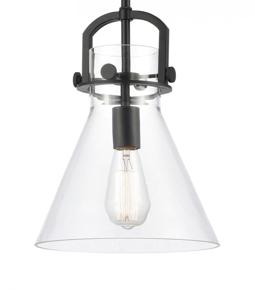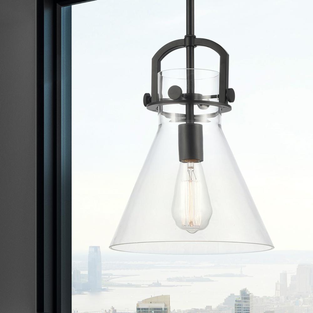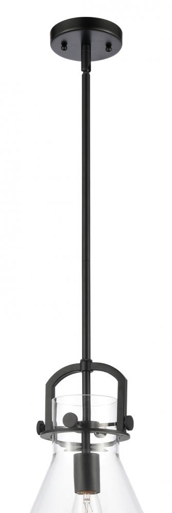 Newton Cone - 1 Light - 10 inch - Matte Black - Clear Shade - Mini Pendant