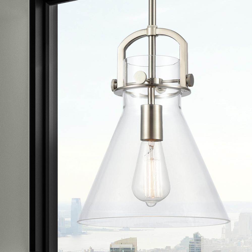 Newton Cone - 1 Light - 10 inch - Satin Nickel - Clear Shade - Mini Pendant