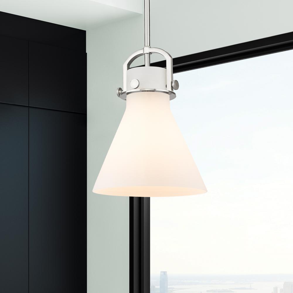 Newton Cone - 1 Light - 10 inch - Satin Nickel - White Shade - Mini Pendant