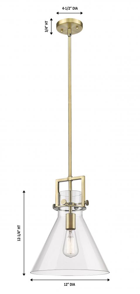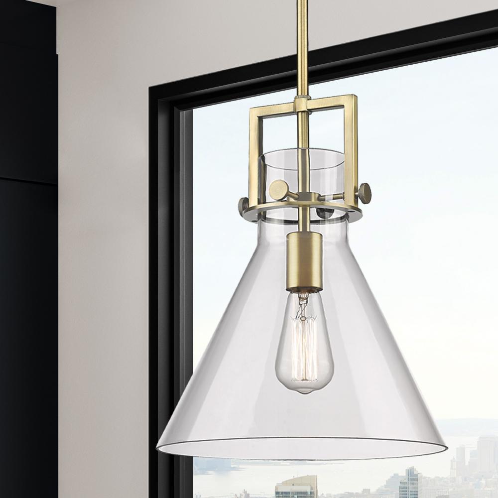 Newton Cone - 1 Light - 12 inch - Brushed Brass - Clear Shade - Mini Pendant