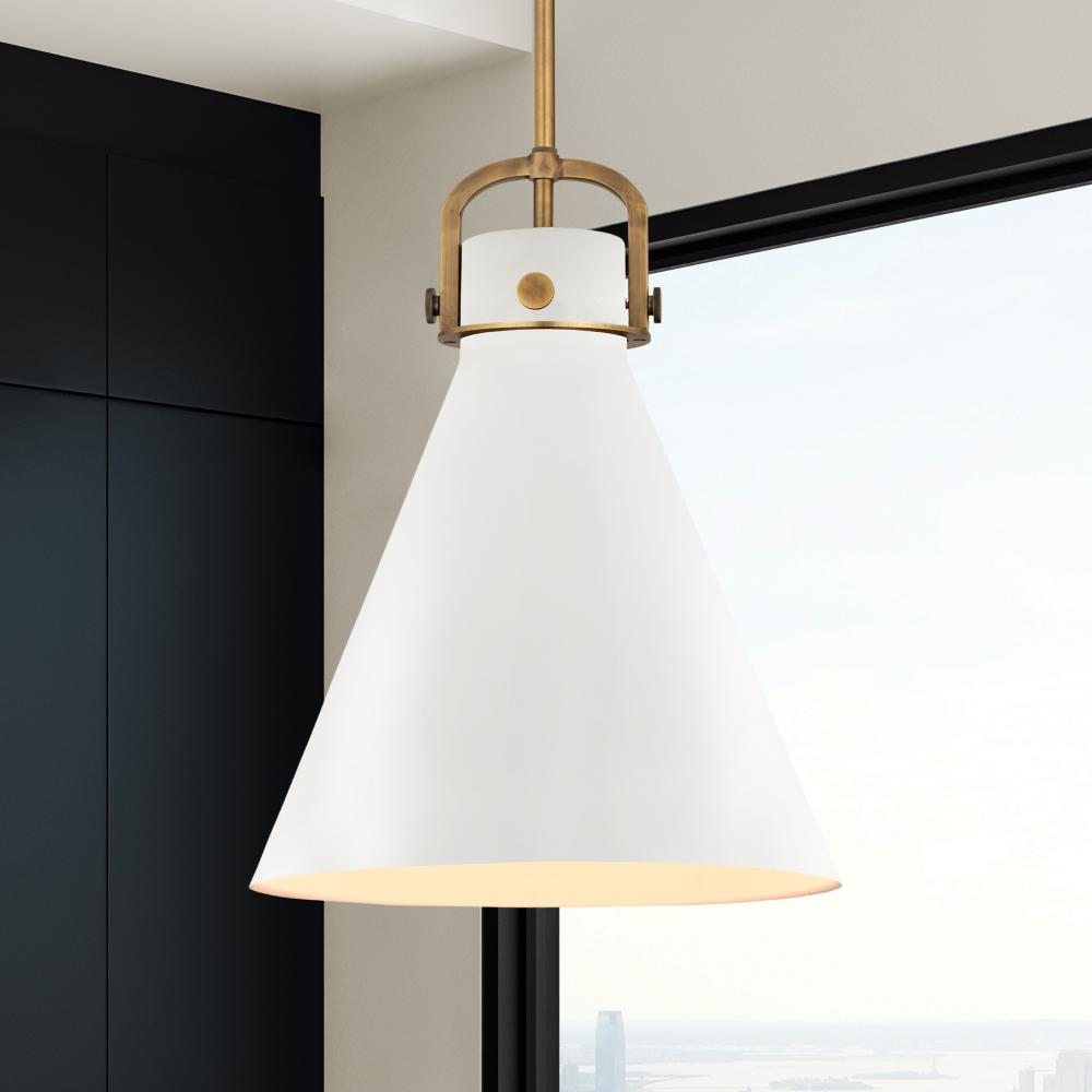 Newton Cone - 1 Light - 14 inch - Brushed Brass - Matte White Shade - Pendant