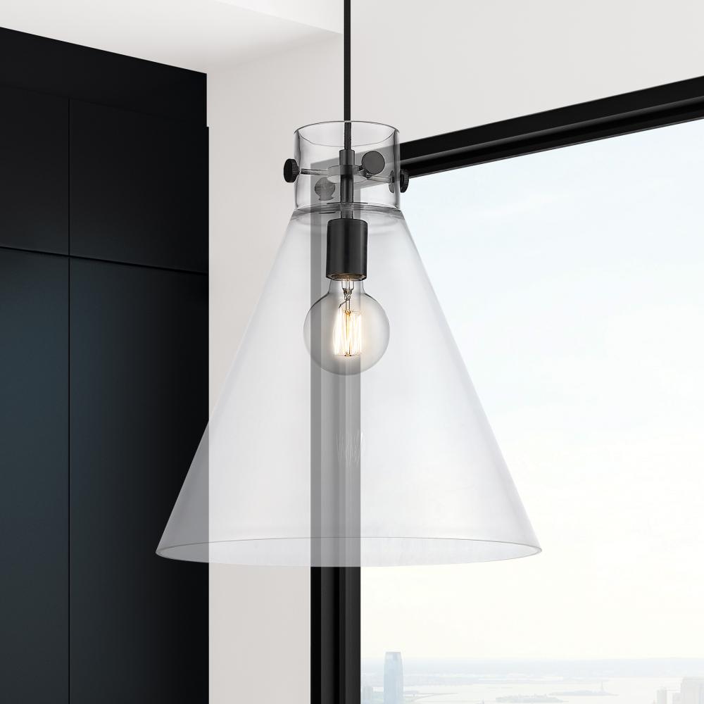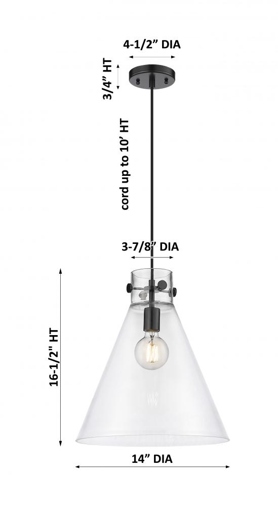 Newton Cone - 1 Light - 14 inch - Matte Black - Clear Shade - Cord hung - Pendant