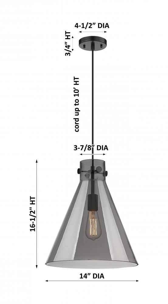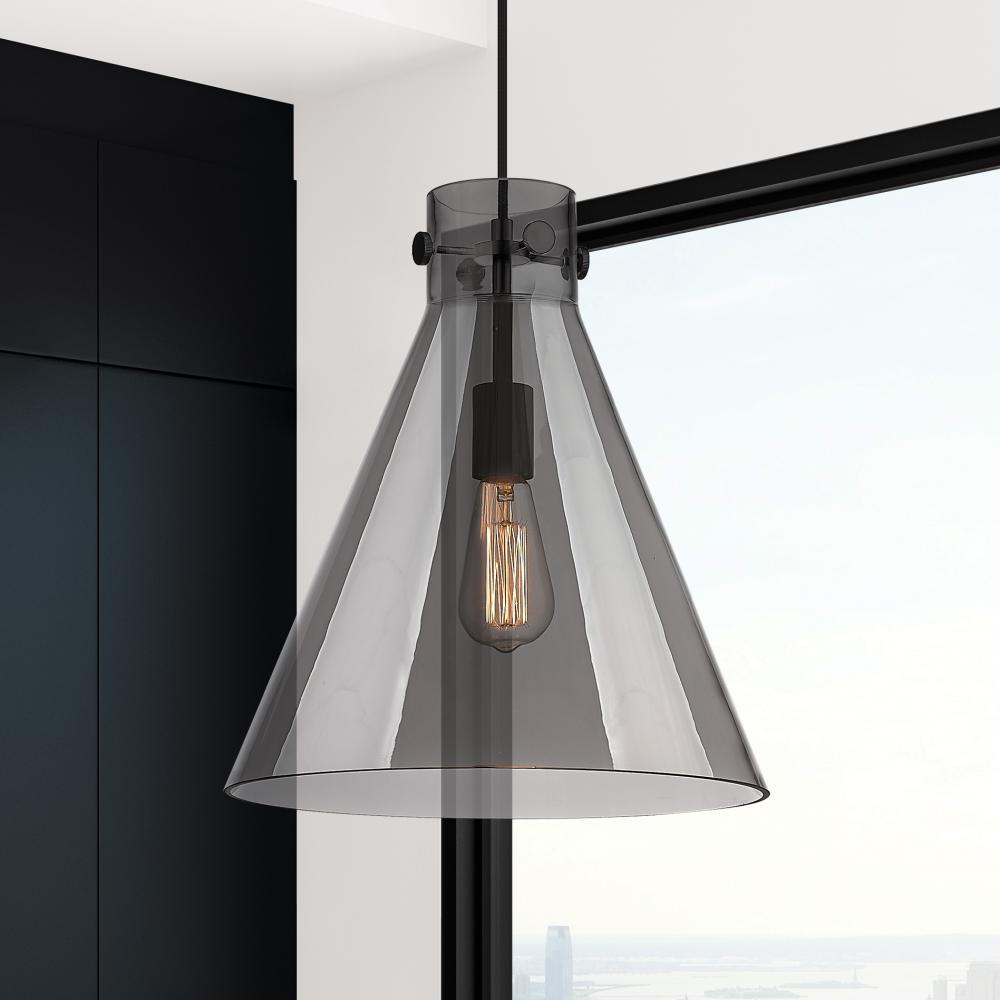 Newton Cone - 1 Light - 14 inch - Matte Black - Light Smoke Shade - Cord hung - Pendant