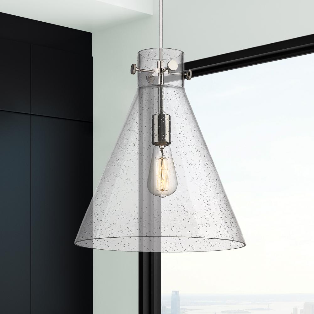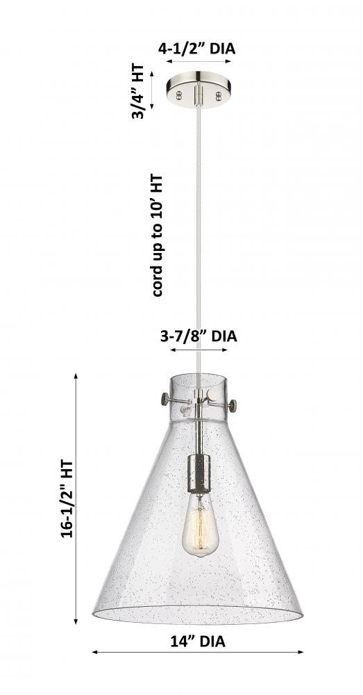 Newton Cone - 1 Light - 14 inch - Polished Nickel - Seedy Shade - Cord hung - Pendant
